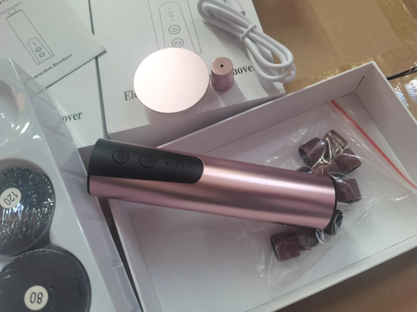 يحتوي الجهاز على 10 رؤوس برد صغيرة (1.4 × 1.4 سم) لبرد وصقل الأظافر بدقة، بالإضافة إلى قاعدة تثبيت آمنة وسهلة التركيب.